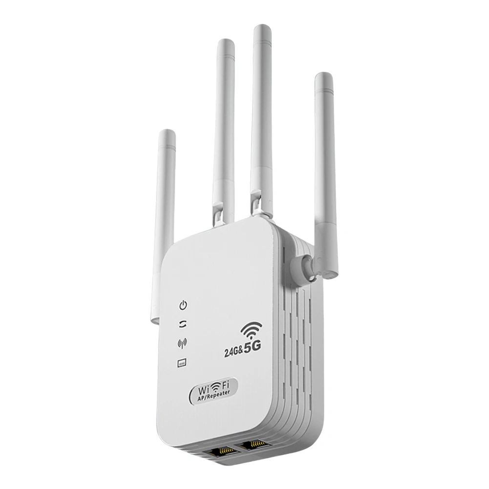1200Mbps Wi-Fi Signal Booster with WAN/LAN Port Dual-Band 2.4GHz/5GHz WiFi Signal Amplifier 4 Antennas Network Expander for Home